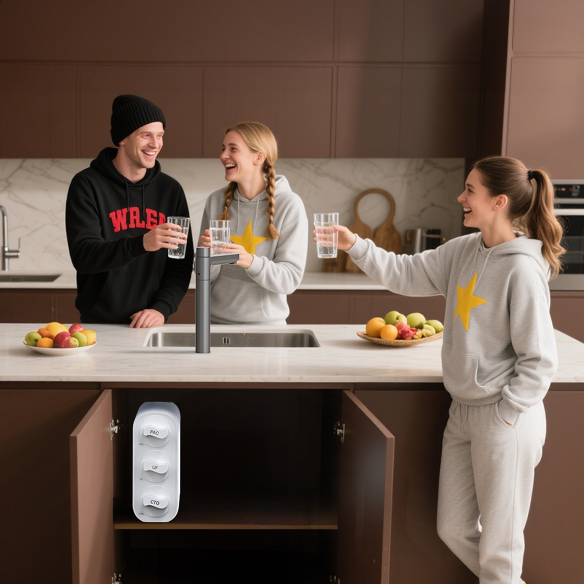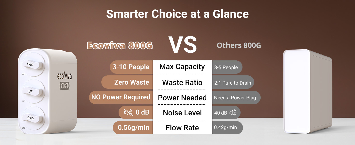 Why overpay for RO? Our 0.01μm ultrafiltration filter removes 40+ contaminants while keeping essential minerals like calcium and magnesium for better-tasting, balanced water. - Zero Waste, No Electricity Needed